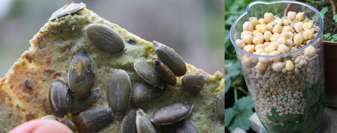 אפשר גם לעשות את הקרקרים רק עם קטניה מסוג אחד ולעשות חצי חצי עם כוסמת ירוקה שהושרתה במים לפחות שעה. - לאחר מכן בלנדרתי הכל (בתוספת שמן זית ,מלח הימלאיה וקצח) לבלילה בסמיכות של “טחינה”, מרחתי על תבנית אפייה שכבה דקה ופיזרתי בחלקם גם זרעונים.