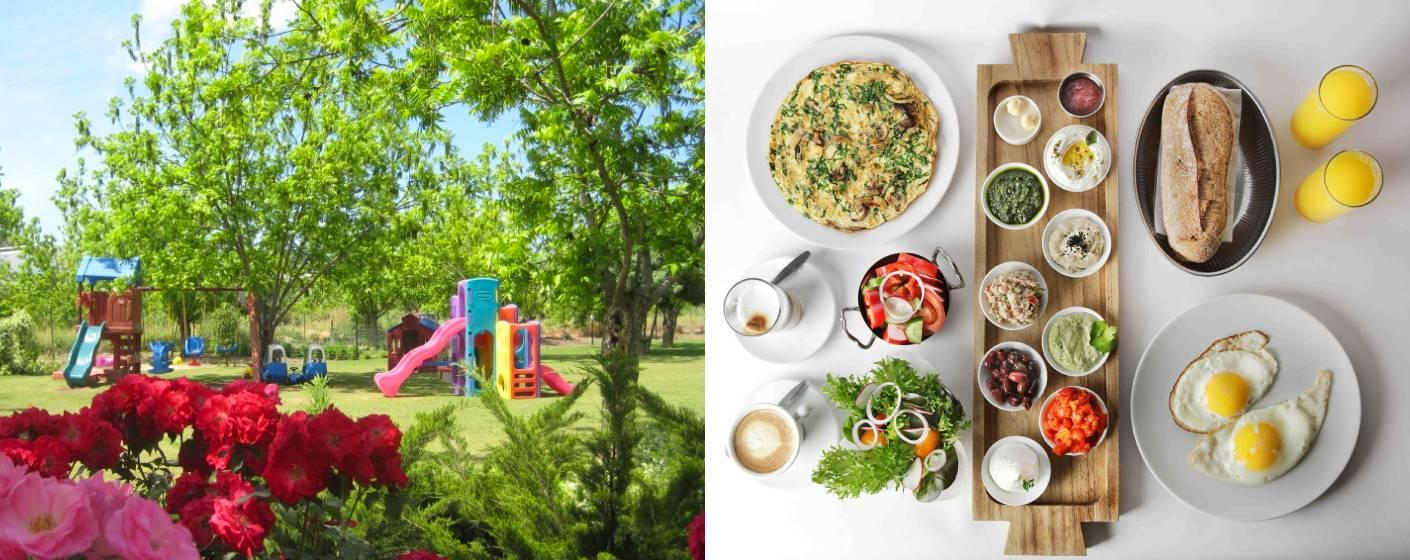 המסעדה נמצאת בלב מטע פקאן מוקפת גינה ירוקה ופינות חמד לישיבה.