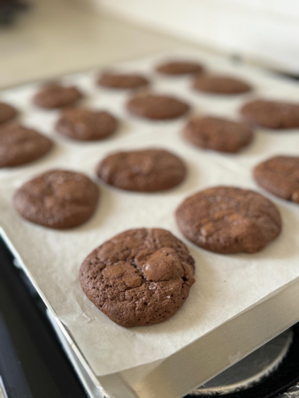 Arrange cookies (should make about 60) on a baking dish with two spoons, sprinkle a touch of Atlantic salt on top and bake in a preheated oven at 170 degrees Celsius for about 12 minutes. Be careful not to overbake!