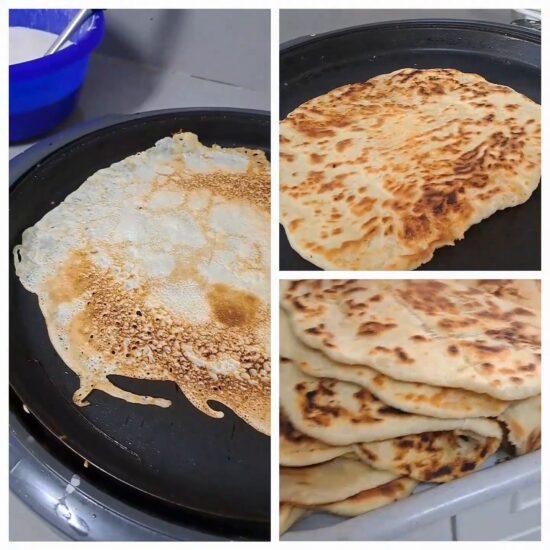 - Roll each ball into a thin sheet. Spread butter or margarine. Fold. Let it rest.