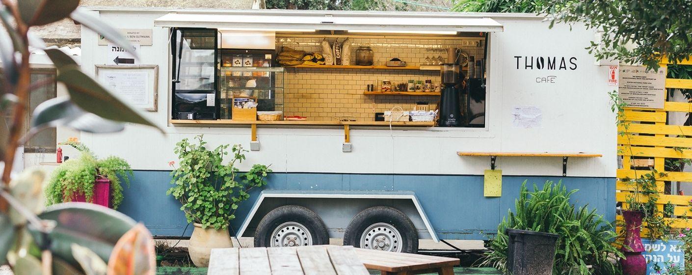 The Thomas Cafe Caravan is located in the green space of the First Courtyard on Kibbutz Kfar Masaryk. The coffee cart is part of the Secrets of the Kibbutz Miracle Tourist Center Complex, located between the water tower and the pioneer hut, and offers a moment of peace and pleasure: quality coffee, pastries, sandwiches, pizza, desserts, and warm hospitality.