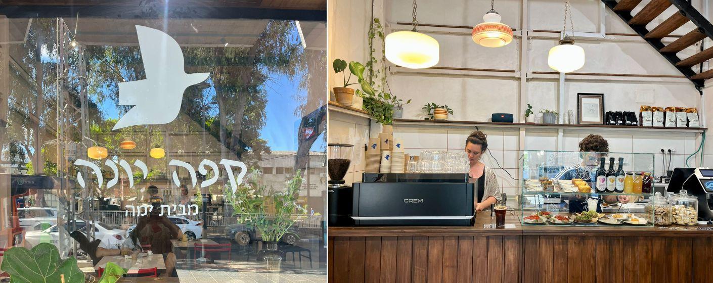 An intimate cafe, a pleasant and meticulous space with houseplants, a record corner, art books, postcards, and special items. Part of the Yama Center in Nahariya, a warm and accessible space for culture, meeting, work, and inspiration.