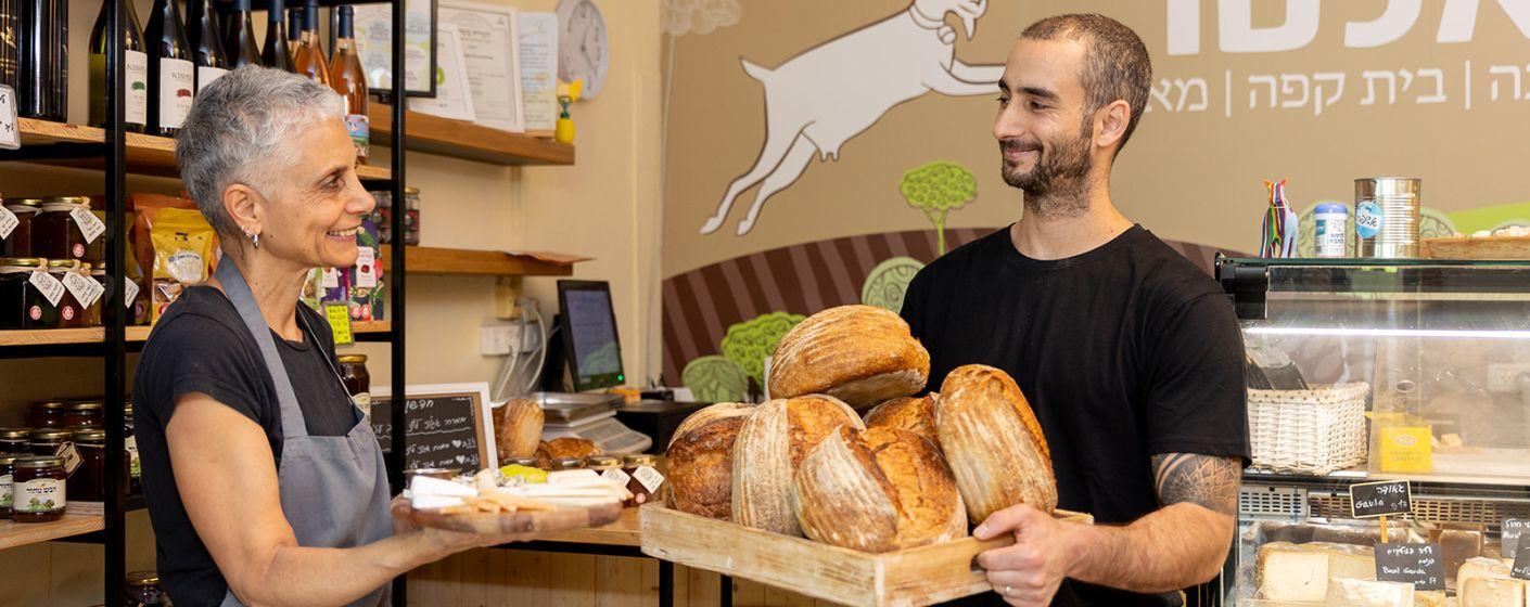 At the Lechem Tenne Bakery, they bake rustic sourdough breads using traditional methods. The breads are made from a wide variety of special flours, including heritage grains, which gives each loaf a different flavor and its own character: French-style country bread, polenta, buckwheat-rye, whole meal poppy seed bread, and more!