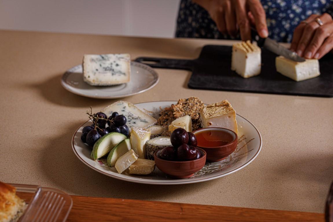 Adjacent to the dairy’s production space, beyond a glass display case that separates the two spaces, there is a pleasant hospitality space with a balcony overlooking the view, where you can enjoy a fine menu of local cheeses.
